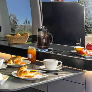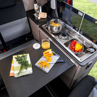 L’idée est aussi simple que convaincante : proposer un van utilisable en ville comme en voyage, pour de petits trajets de tous les jours, autant que pour vos grands road-trips. A ce titre, les offres Camp- et Van- sont parfaitement complémentaires. Les premiers disposent d’un agencement complet (cuisine, couchage, rangement) mais partiellement amovible. Quand les deuxièmes offrent un aménagement light, qui respecte tout à fait l’habitabilité du monospace d’origine. Dans les deux cas, le toit relevable est de mise (avec son couchage haut), et le nombre de places route peut-être ajusté, grâce aux rails de fixation.